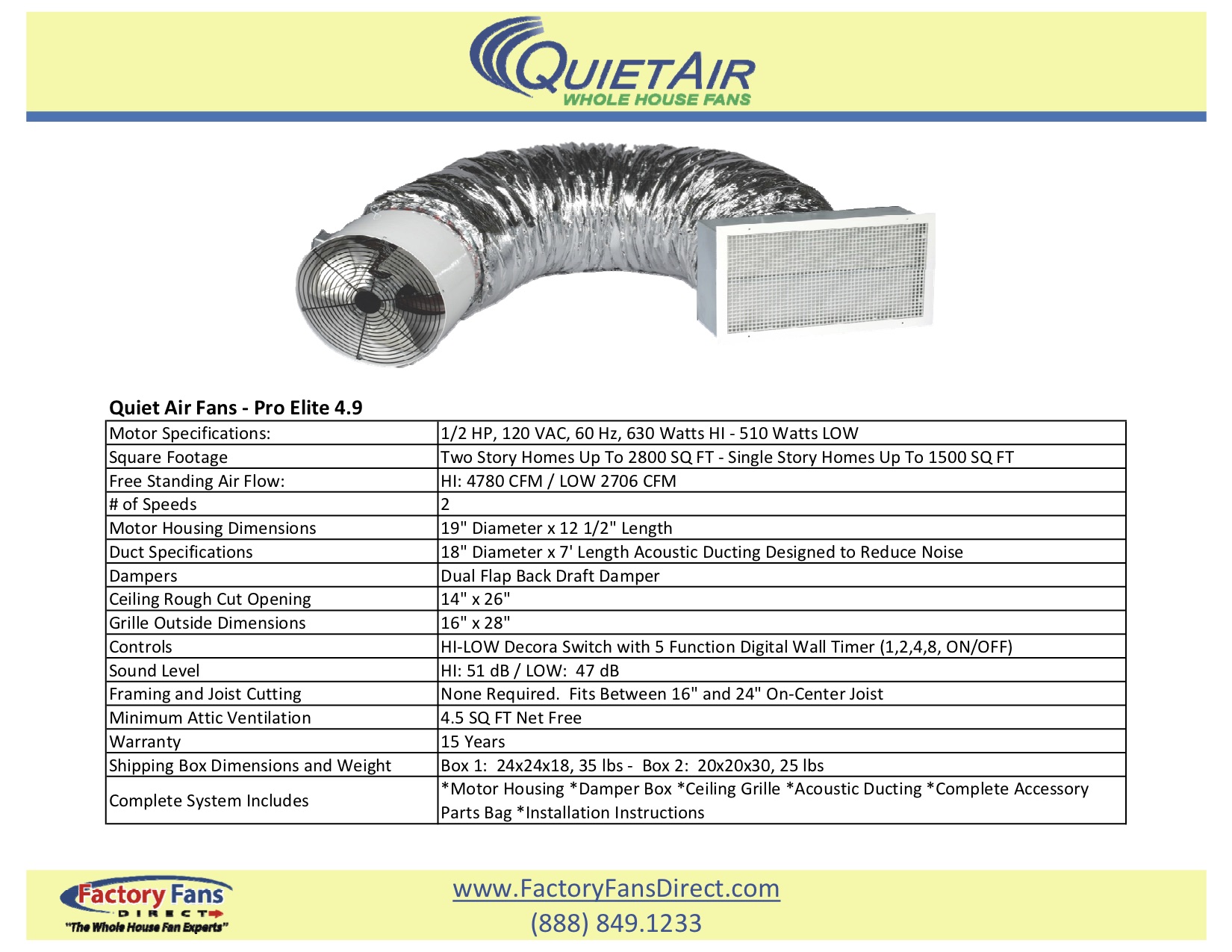 Pro Elite 4.9 Whole House Fan Specifications